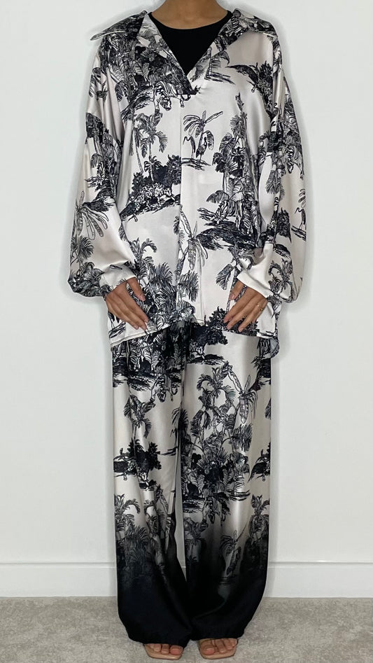 Arwa Satin Two Piece Top and Trouser Printed Co-ord